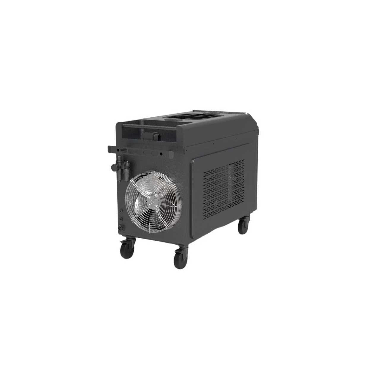 Das System ist fest verbaut in einem kompakten, fahrbaren Maschinengestell mit integrierter industrieller Wasserkühlung. So bleibt die volle Leistung auch bei längeren Einsätzen konstant verfügbar – ohne Überhitzung, ohne Ausfälle. Ideal für anspruchsvolle Dauereinsätze in Produktion, Werften, Maschinenbau oder der Formenreinigung.